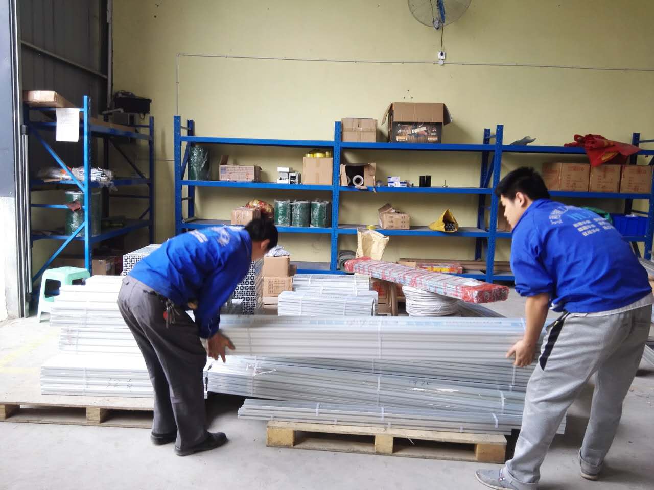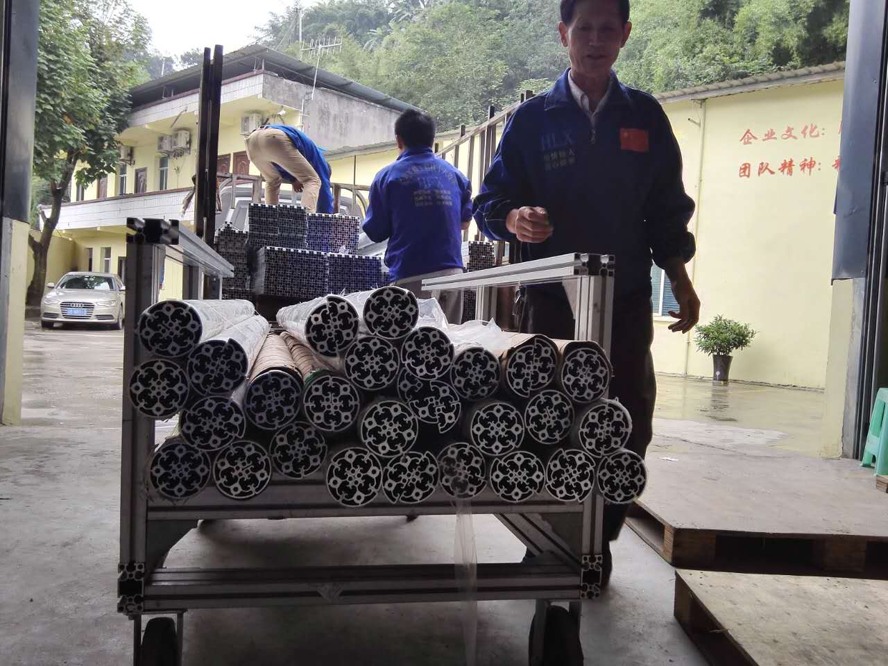 匯利興戰(zhàn)士們小心翼翼的抬放,并且將一根根鋁型材整齊擺放在貨車上。(專心、專業(yè)、專注、專家-匯利興)