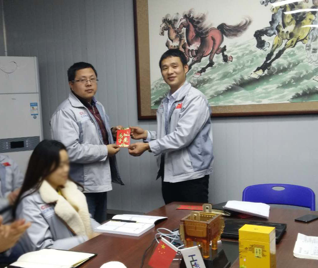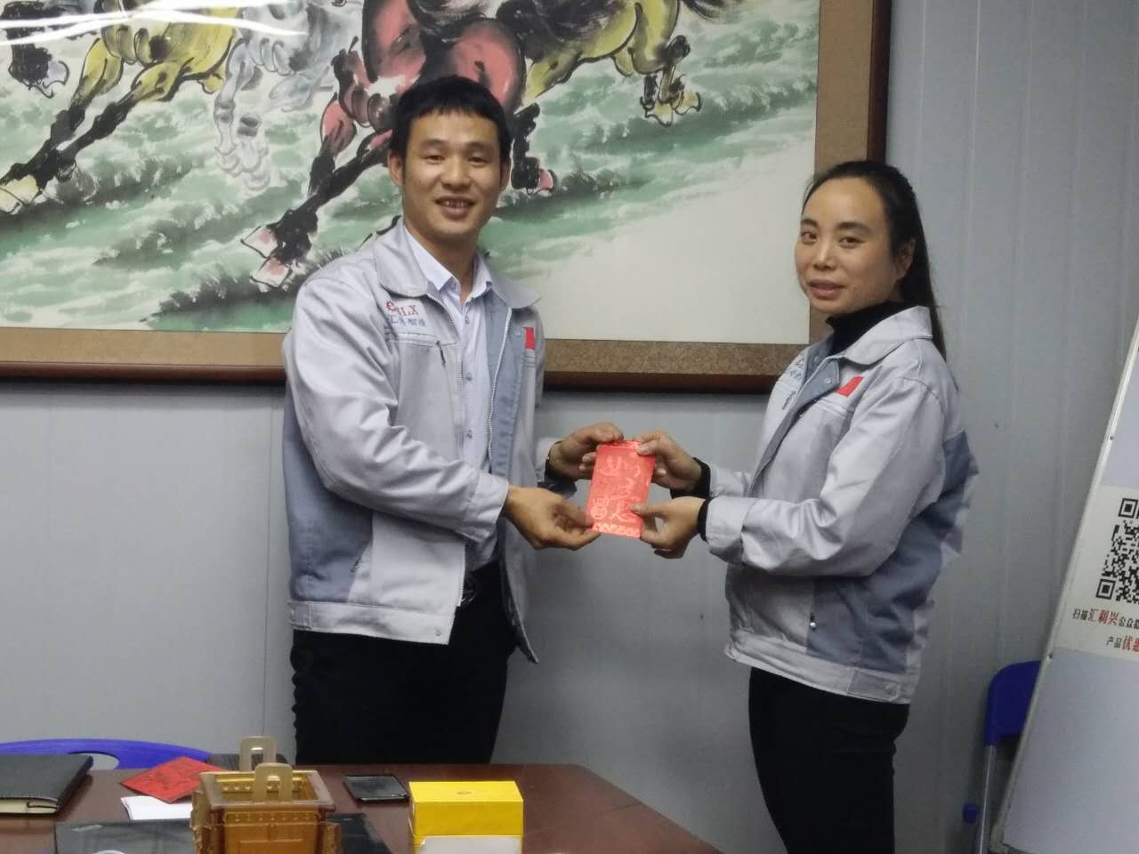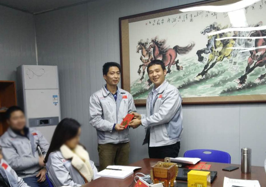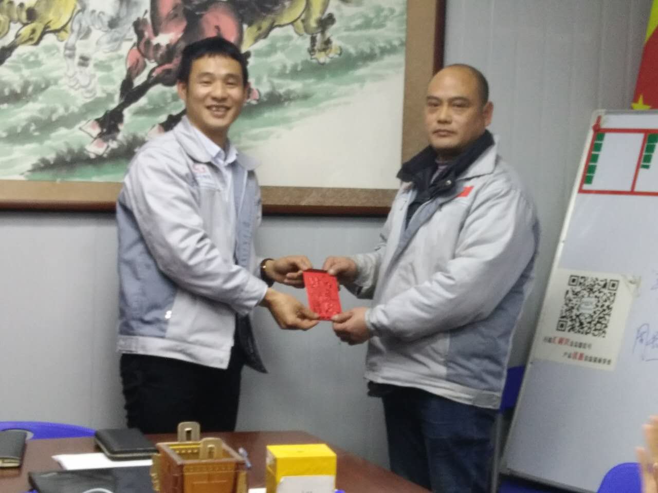 胡總經(jīng)理(左圖)與月度之星周榮(右圖)同框合影并授予獎(jiǎng)金