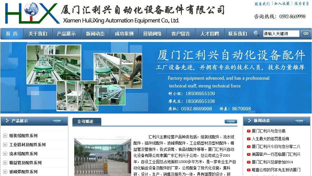 匯利興廈門公司注冊(cè)成立,這是匯利興集團(tuán)公司的里程碑,廈門公司位于同安區(qū)同安建材園48棟105-107號(hào),業(yè)務(wù)聯(lián)系方式0592-8669998/8679998 傳真:0592-8679998手機(jī):18506955108廖先生 18506955109 鐘小姐。 匯利興總公司位于廣東東莞,自建匯利興工業(yè)園12000平方,公司目前已相繼在江蘇昆山,廣東深圳,重慶、香港設(shè)立分公司。更好的服務(wù)、提供優(yōu)質(zhì)便捷的服務(wù),匯利興一直造福于自動(dòng)化設(shè)備制造廠商、電子設(shè)備廠商,各類家用電器生產(chǎn)制造廠家,提供各類別質(zhì)優(yōu)廉價(jià)的生產(chǎn)線配件,整廠自動(dòng)化生產(chǎn)線。匯利興一直領(lǐng)跑業(yè)界為客戶創(chuàng)造更高的價(jià)值,我們站在業(yè)界更高峰,匯利興不同凡響!