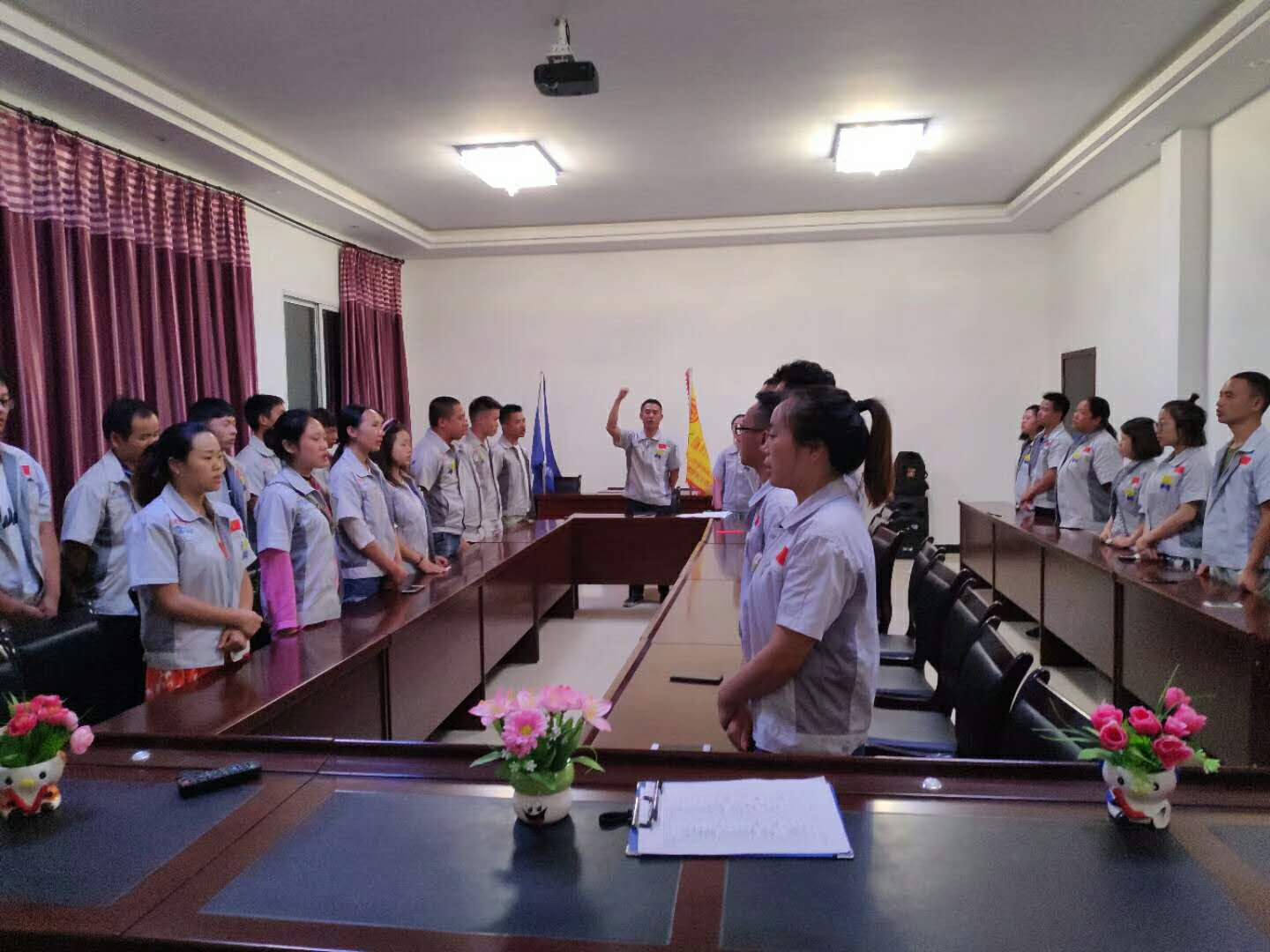 會(huì)議開(kāi)始前,全體員工整肅衣冠 ,對(duì)匯興人倍加推崇的“三道文化”(孝道、商道、人道)鄭重地鞠躬,莊嚴(yán)宣誓企業(yè)精神“用情做人、用心做事”,團(tuán)隊(duì)精神“忠誠(chéng)團(tuán)結(jié)、勤奮進(jìn)取”,隨后會(huì)議正式開(kāi)始,由各部門(mén)主管相應(yīng)作7月份總結(jié),總結(jié)得與失,有則改之無(wú)則加勉;由張副總做總結(jié),表示團(tuán)隊(duì)的力量及每個(gè)部門(mén)每個(gè)人的責(zé)任與擔(dān)當(dāng),希望大家像拔河一樣緊拽著繩索不放棄,永創(chuàng)佳績(jī)、積極向上,此后行政主管陳香草宣讀公司相關(guān)規(guī)章制度及福利事宜,最后胡總勉勵(lì)大家個(gè)人的成功不算成功,團(tuán)隊(duì)的成功才算成功并表示匯利興的團(tuán)隊(duì)是最棒的團(tuán)隊(duì)。