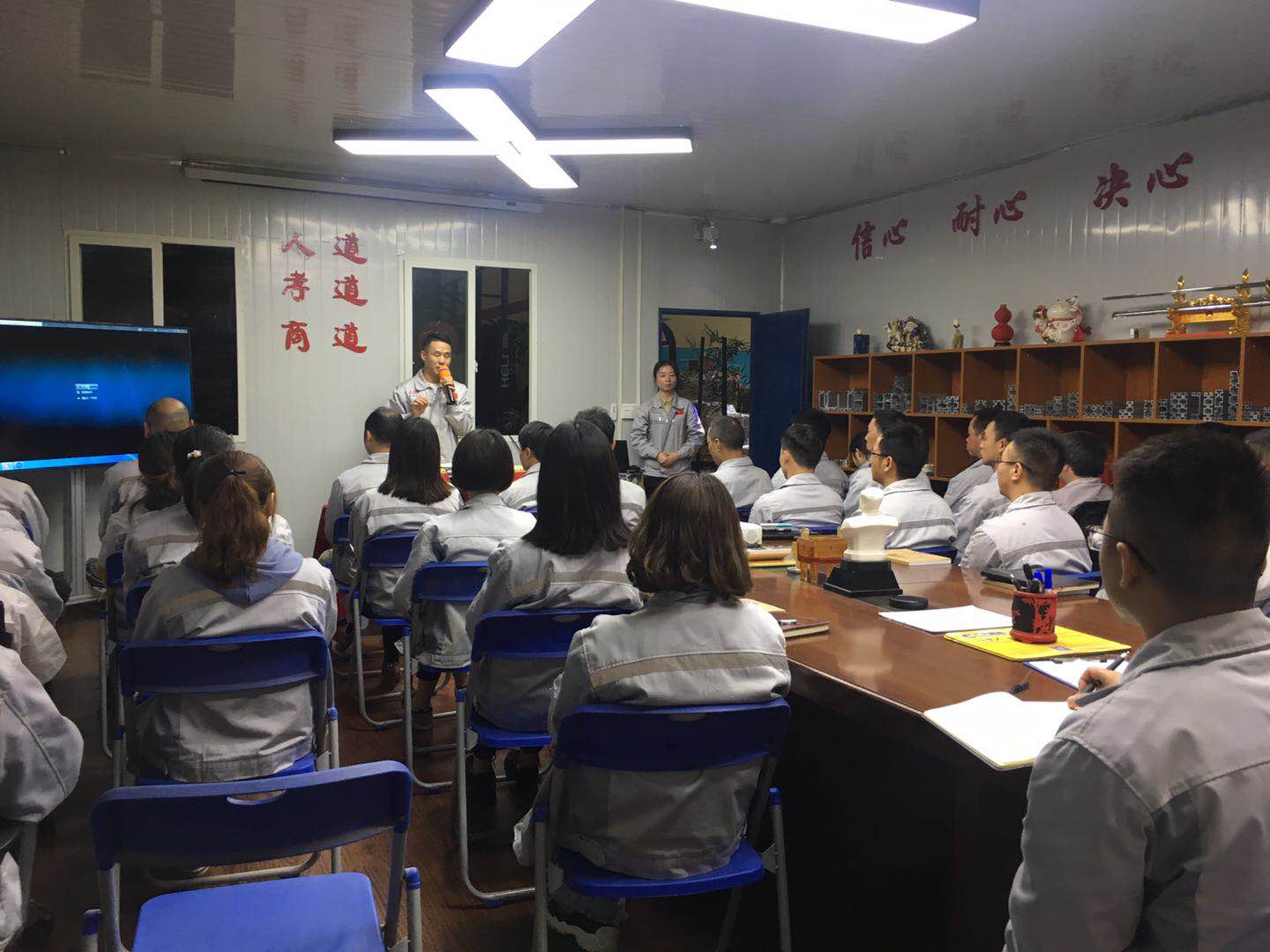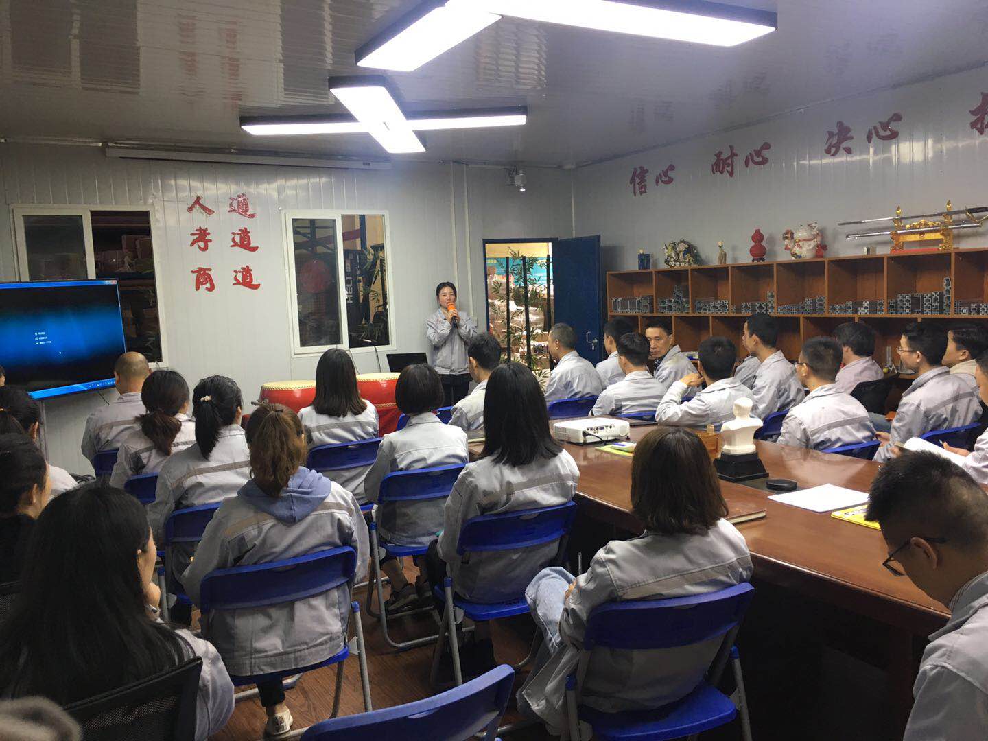 會議第三項議程,新員工入職儀式。由我們常務(wù)副總張總親自為我們新員工頒發(fā)紀(jì)念品。公司自成立以來,一直加大對新鮮血液的注入同時也非常注重人才的培養(yǎng)和團(tuán)隊的建設(shè),為每個人的發(fā)展都提供了寬廣的空間同時匯利興也是一個溫暖的大家庭,大家積極向上,互幫互助,團(tuán)結(jié)友善。