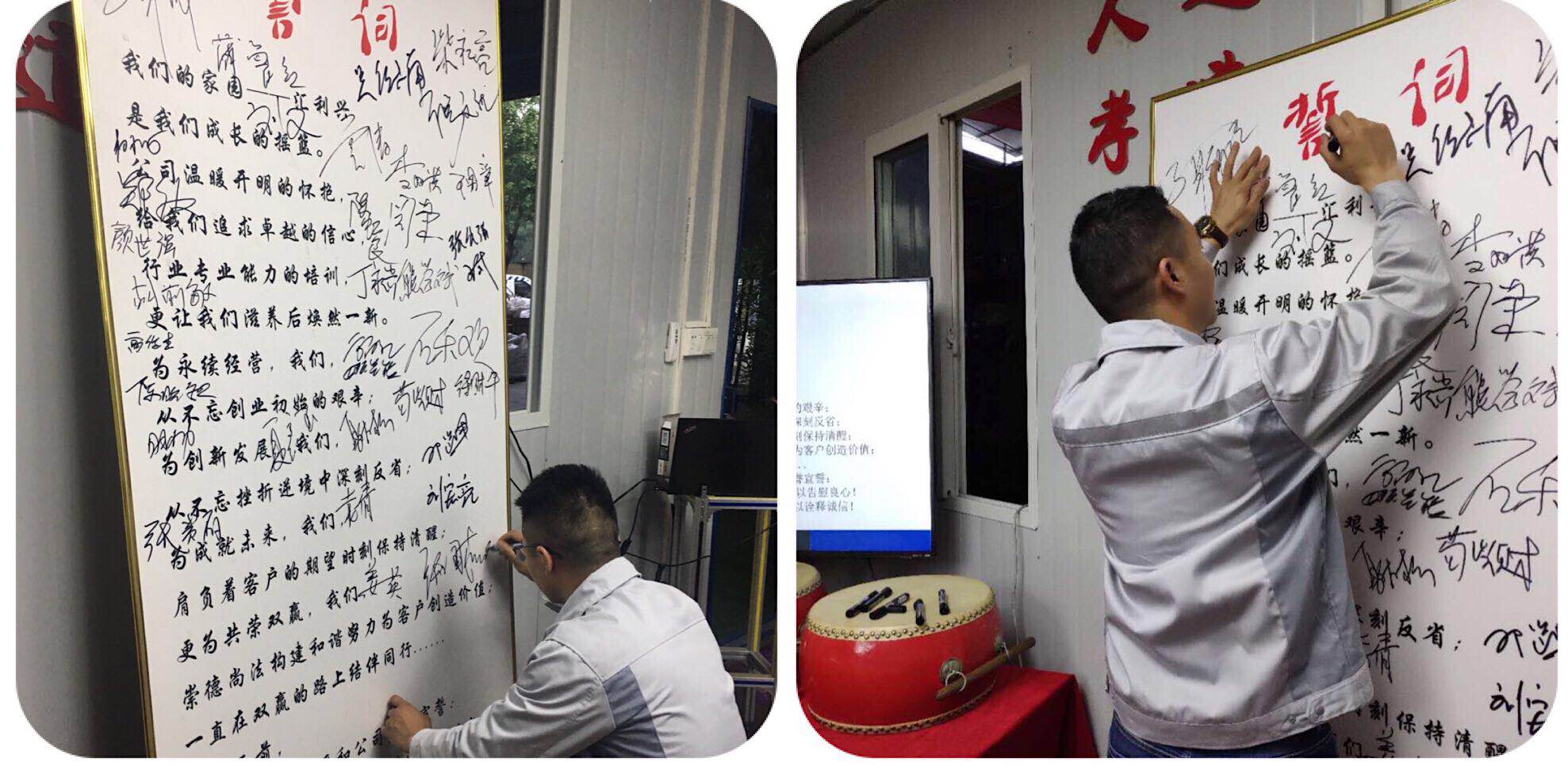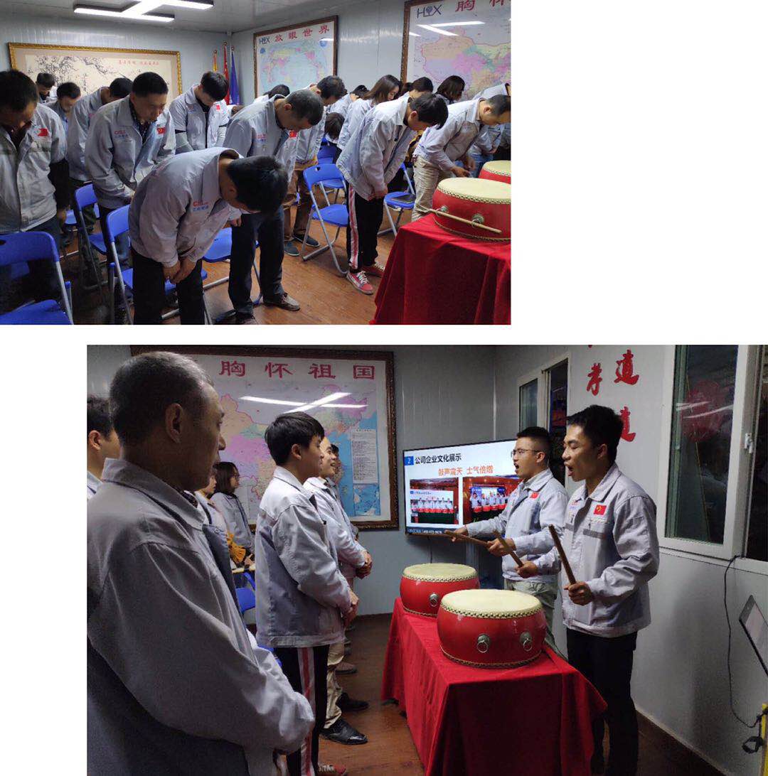 會議第二項議程,企業(yè)文化的展示。全體匯興人整肅衣冠對匯興人倍加推崇的“三道文化”(孝道、商道、人道)鄭重地鞠躬,莊嚴(yán)宣誓企業(yè)愿景:“成為全球領(lǐng)先的智能自動化產(chǎn)業(yè)鏈集成服務(wù)商”,企業(yè)使命:做受尊敬的好人,造受尊敬的產(chǎn)品,辦受尊敬的企業(yè),建受尊敬的平臺,企業(yè)精神“用情做人、用心做事”,團(tuán)隊精神“忠誠團(tuán)結(jié)、勤奮進(jìn)取”,工匠精神:創(chuàng)于手、精于工、智于器、匠于心、品于行,行為準(zhǔn)則:口中有德、目中有人、手中有技、心中有愛、行中有善,職業(yè)準(zhǔn)則:對工作熱臉、對同事笑臉、對錯誤紅臉、對浪費黑臉、對榮譽爭臉。隨后二位核心精英擊士氣鼓,士氣比武器更重要,現(xiàn)場氣氛熱烈、振奮人心。