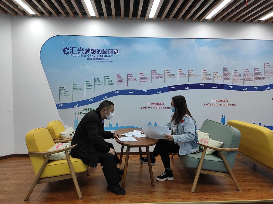 目前復(fù)工35人全部各就其位,與時間賽跑,爭分奪秒;來來回回穿梭在辦公場所內(nèi),與同事擦肩而過,穿行的急迫感仿佛疫情早已遠去,留下的是這份工作的熱情與激情。一個個平凡的身影,在面對疫情前,他們選擇了勇敢,選擇一路向前;在工作面前,他們選擇了擔當,用責任詮釋著平凡但不平庸的一天,用笑容渲染著每位認真工作的匯興人。