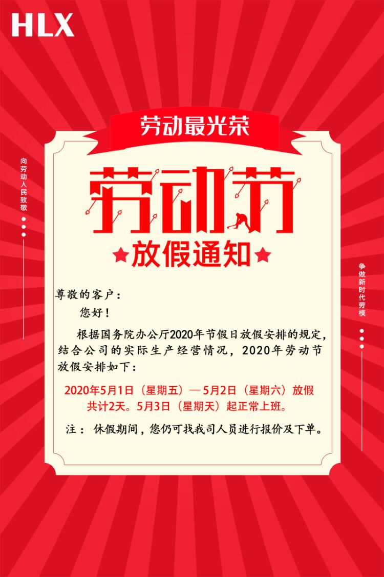 匯利興新聞 當(dāng)前位置:網(wǎng)站首頁 >> 匯利興新聞 >> 2020年勞動節(jié)放假通知