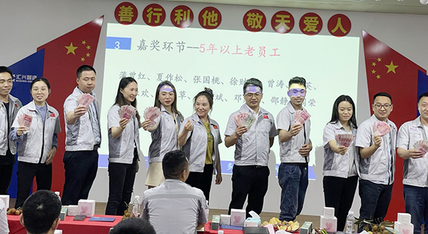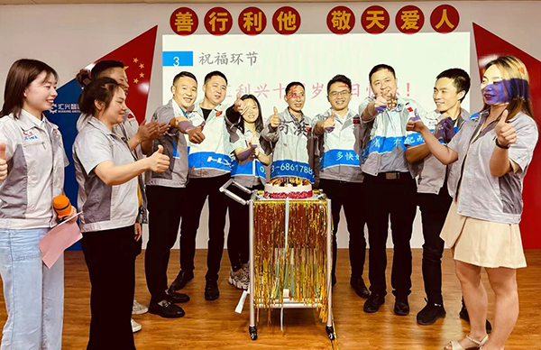 老員工代表夏佐松發(fā)表感言。夏經(jīng)理表示對(duì)于我而言,公司就是我的家,五年、十年這不是簡(jiǎn)單的數(shù)字,是我對(duì)家的愛(ài),是我藏于心中的一份情,同時(shí)十年也是匯利興一段光輝的歷程?;叵雱傔M(jìn)匯利興的面貌再到今天,公司發(fā)生了質(zhì)的飛躍,十年匯利興人共同的奮斗,十年不懈的探索與實(shí)踐,十年的積累與沉淀,更是離不開(kāi)領(lǐng)導(dǎo)的決策和大家的努力,也正是因?yàn)橛羞@樣一群人在公司領(lǐng)導(dǎo)的帶領(lǐng)下,不斷助推著公司前行,突破!咱們的家才會(huì)越來(lái)越優(yōu)秀!在此,再次祝賀公司十周年生日快樂(lè)! 總部及各分子公司送祝福及慶祝十周年生日。隨著一曲歡快的生日音樂(lè)正式拉開(kāi)十周年慶典儀式,董事長(zhǎng)及各分子公司對(duì)重慶工廠的聲聲祝福,讓在場(chǎng)的每一個(gè)人都激動(dòng)萬(wàn)分,處處洋溢著滿滿的熱情,處處見(jiàn)證了重慶十年的奮斗歷程!中層管理人員共同點(diǎn)燃十根蠟燭,象征著匯利興重慶工廠業(yè)績(jī)蒸蒸日上、鴻運(yùn)相伴永久,隨后全體匯利興人一起唱響生日歌,一起慶祝重慶十周年生日快樂(lè)!