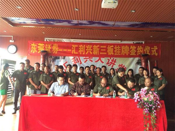 2015年5月18日上午11時(shí)18分,廣東匯利興精工科技有限公司與東莞證券簽約“新三板”掛牌儀式在匯利興會(huì)議大廳隆重舉行。