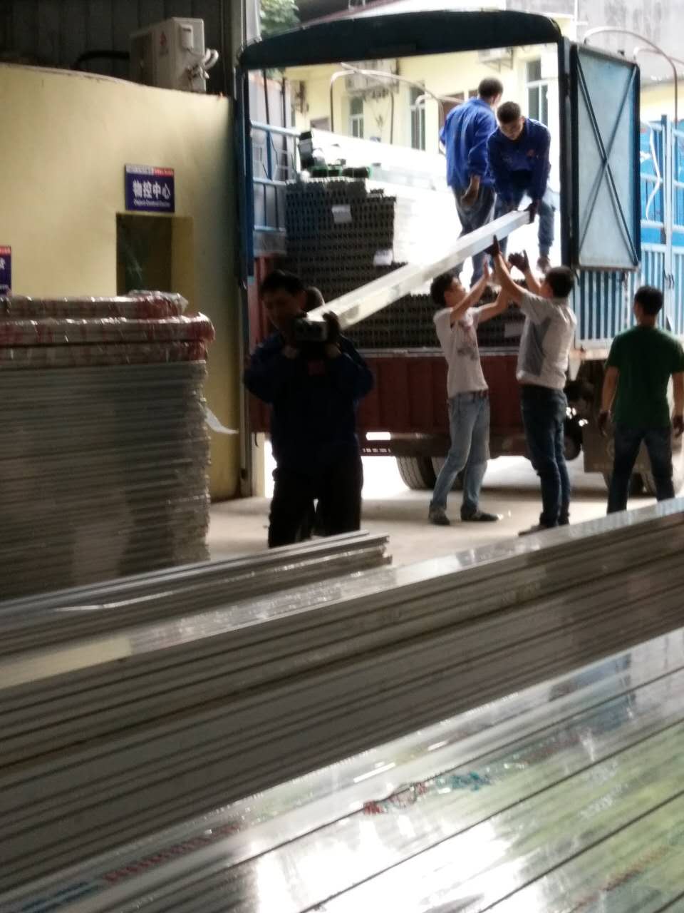 匯利興戰(zhàn)士齊心協(xié)力一同卸下鋁型材,滿大車的鋁型材轉(zhuǎn)間就轉(zhuǎn)移至倉庫。(團結(jié)就是力量)