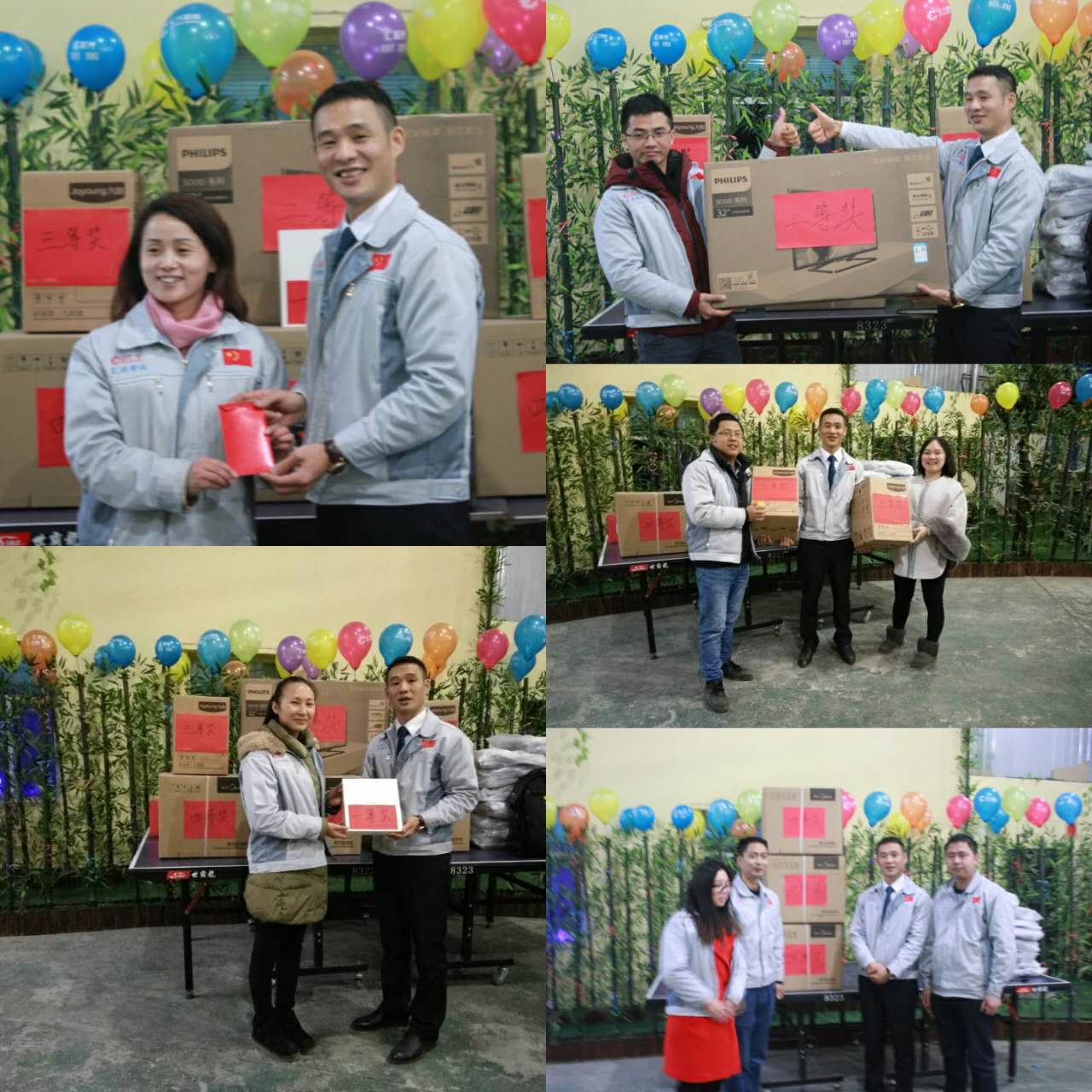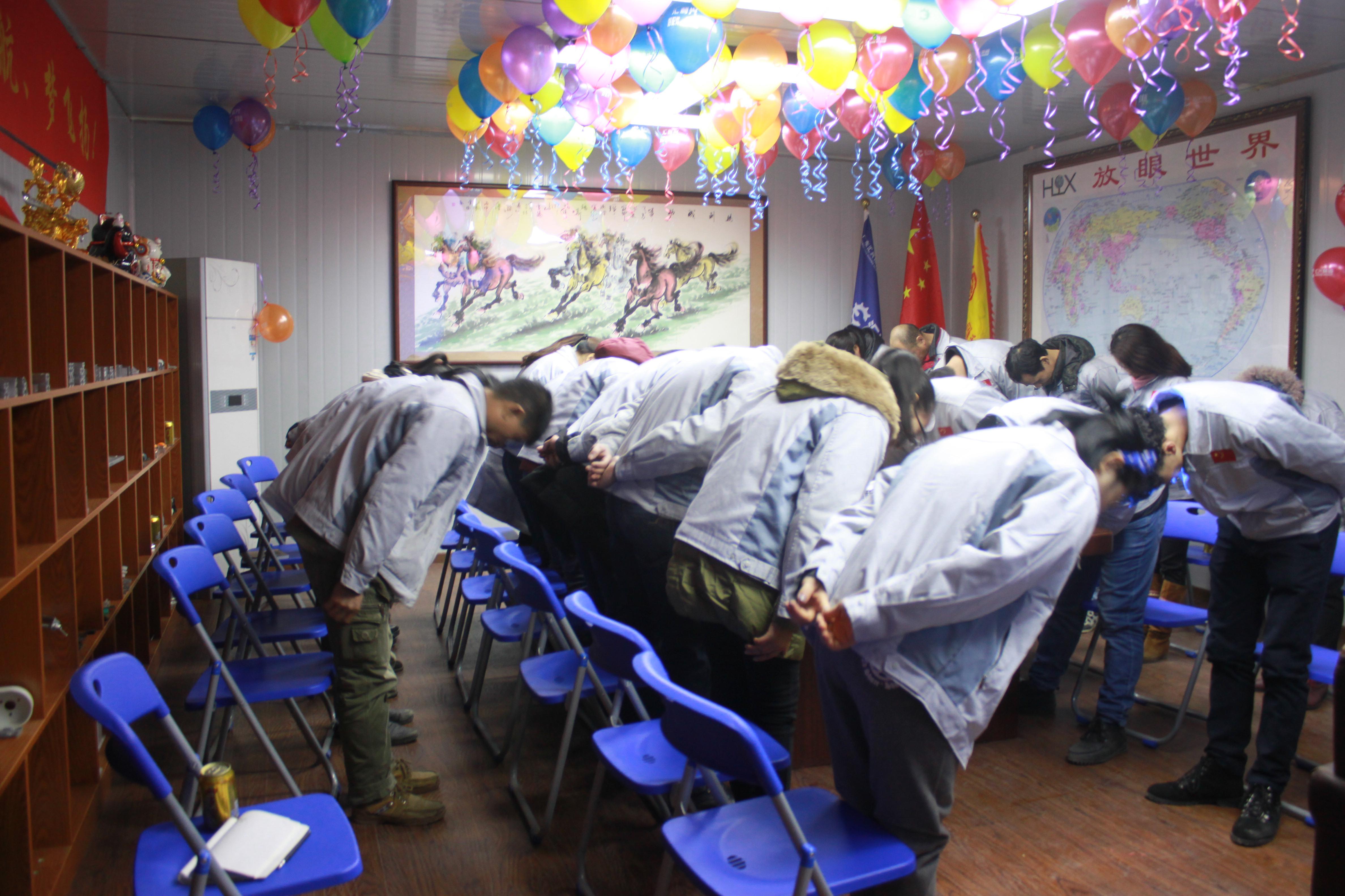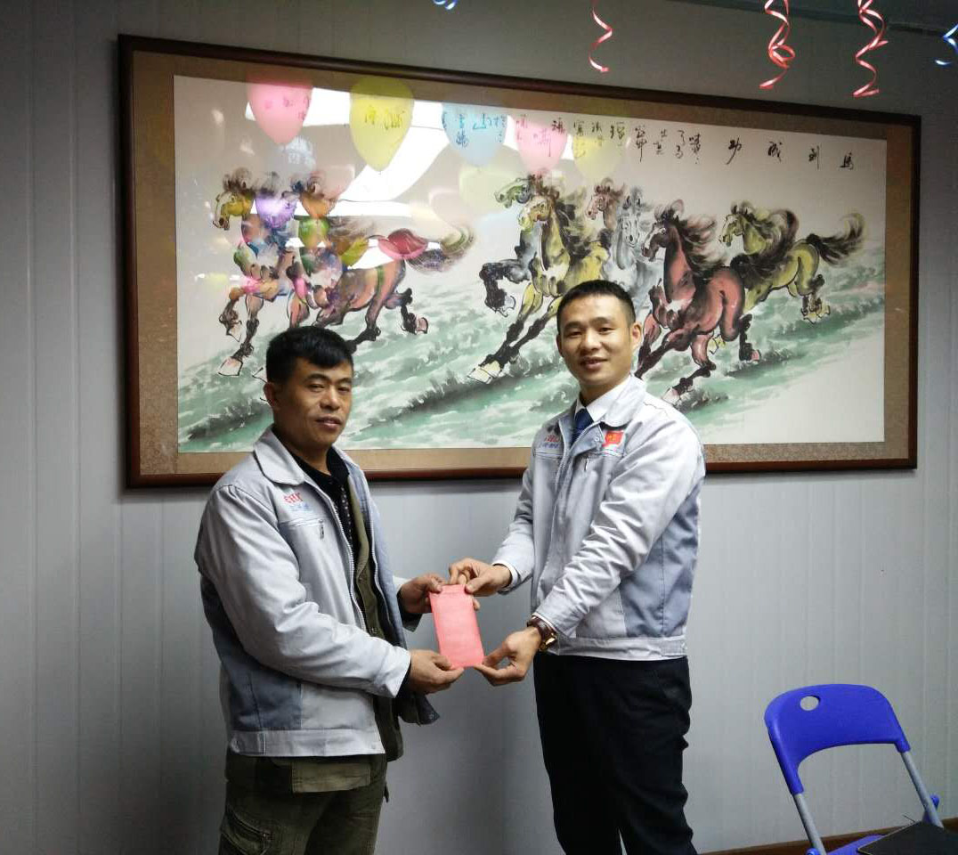 (眾人一條心)游戲準(zhǔn)備中,裁判們?yōu)檫x手們系上同心交織的紐帶 匯利興女戰(zhàn)士敲擊士鼓,士氣比武器更重要 會(huì)議召開前對企業(yè)三道(人道、孝道、商道)行三鞠躬 年度盛會(huì)由主持人劉園園上臺(tái)正式拉開序幕,會(huì)議前我們一起回眸2016年工作縮影,回眸了與匯利興大家庭的交集。 會(huì)議上,胡總經(jīng)理表示:2017年新起點(diǎn)的一系列規(guī)章制度、員工薪酬福利制度、員工職位考核制度,回首了2016年匯利興的成長與發(fā)展,3月14日公司搬址、傳祺戰(zhàn)車加入、倉儲(chǔ)及系統(tǒng)完善,2017年展望與目標(biāo)。同時(shí)表示感謝大家在2016年中的包容與支持同時(shí)也相信大家在2017年能一起攜手完成我們的目標(biāo)及挑戰(zhàn)。此后各部門代表發(fā)言總結(jié)2016年展望及2017年每月業(yè)績目標(biāo)。 匯利興全體戰(zhàn)士一起回眸2016年與匯利興大家庭的交集 隨著年會(huì)的氣氛越來越濃厚,接下來由胡總經(jīng)理一一頒發(fā)獎(jiǎng)金及揭曉年會(huì)大獎(jiǎng)獲者。獎(jiǎng)金頒發(fā):最佳付出獎(jiǎng)、最佳責(zé)任獎(jiǎng)分別是劉元平與石樂歡戰(zhàn)士,在此感謝兩位家人的奉獻(xiàn)與付出。 在你們愛家的同時(shí)匯利興這個(gè)家會(huì)更加愛你們。 胡偉路總經(jīng)理與“最佳責(zé)任獎(jiǎng)”榮獲者石樂歡同框合影 胡偉路總經(jīng)理與“最佳付出獎(jiǎng)”榮獲者劉元平同框合影 年會(huì)大獎(jiǎng)揭曉,胡總經(jīng)理一一揭曉大獎(jiǎng)獲者,此次大獎(jiǎng)由26個(gè)英文字母之一相繼而出,獲獎(jiǎng)組圖以下: 胡偉路總經(jīng)理與年度盛會(huì)大獎(jiǎng)獲得者合影圖(特等獎(jiǎng)、一等獎(jiǎng)、二等獎(jiǎng)、三等獎(jiǎng)、四等獎(jiǎng)) 年度盛典活動(dòng)逐漸接近尾聲,活動(dòng)以“畫鼻子”游戲拉開帷幕。即使看不見光明,只要心中有信仰、信念那也將是一個(gè)通往前方的航燈。 匯利興大家庭年會(huì)團(tuán)圓飯圖貌 隨著年飯的結(jié)束,2016年盛會(huì)圓滿結(jié)束。回首過去,放眼未來,2016年已逝去的,我們不再留戀,2017年的到來我們?nèi)ビ樱灰驗(yàn)樵谛碌囊荒暧形覀兊哪繕?biāo)及夢想我們要一同去創(chuàng)造去實(shí)現(xiàn)它,實(shí)現(xiàn)中國智能裝備全產(chǎn)業(yè)鏈集成智造標(biāo)桿,繼續(xù)引領(lǐng)行業(yè)的發(fā)展。同時(shí)在此感恩所有對匯利興關(guān)懷及支持過的您們,正是因?yàn)橛辛四鷤兊闹С植诺靡宰寘R利興茁壯成長,才能讓匯利興在行業(yè)道路上越走越穩(wěn)。感恩您們......