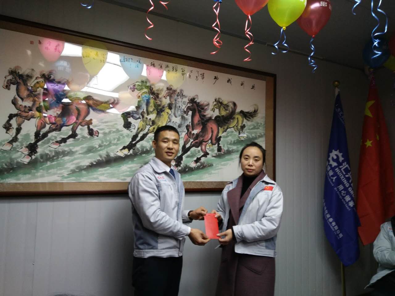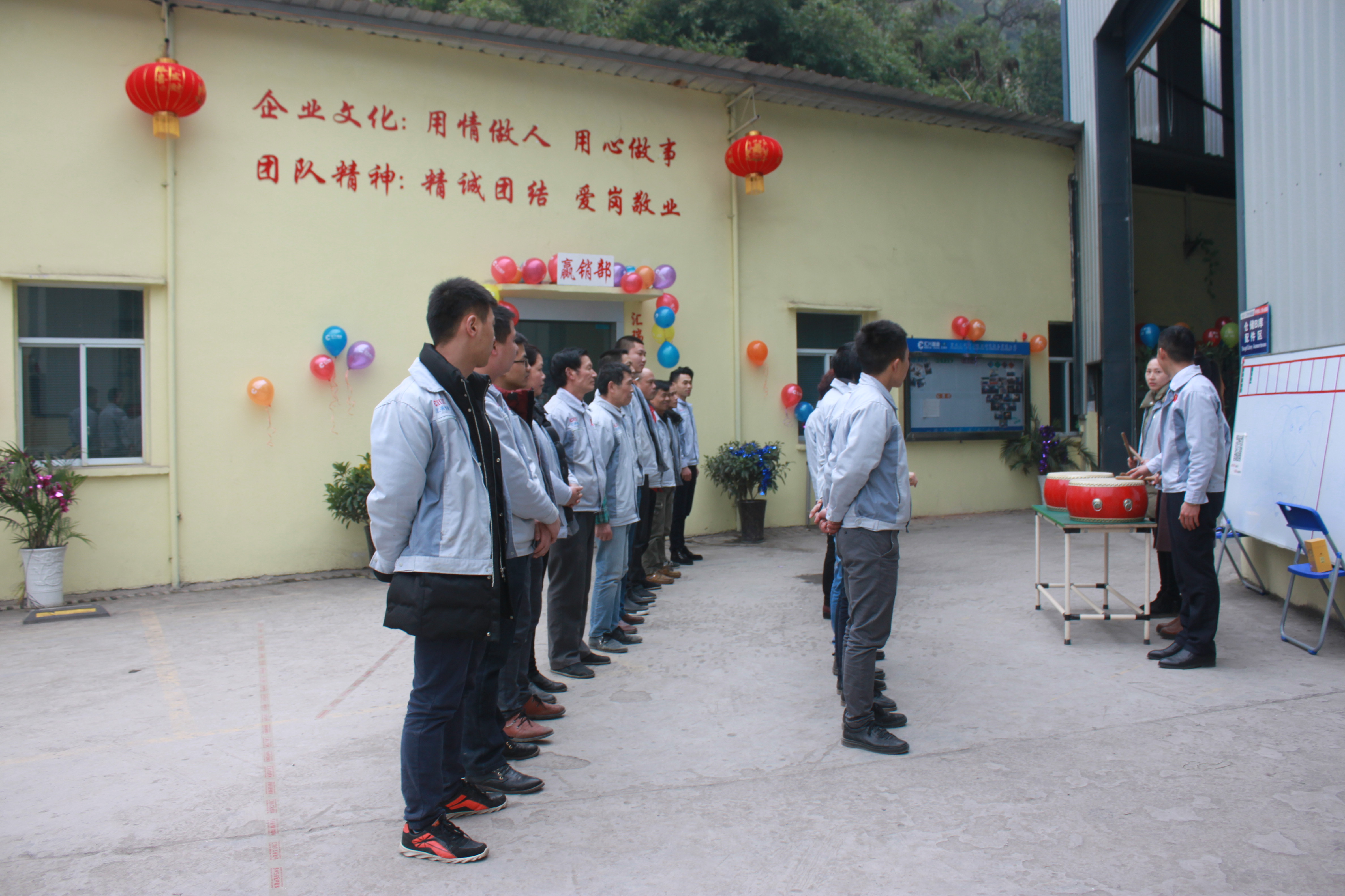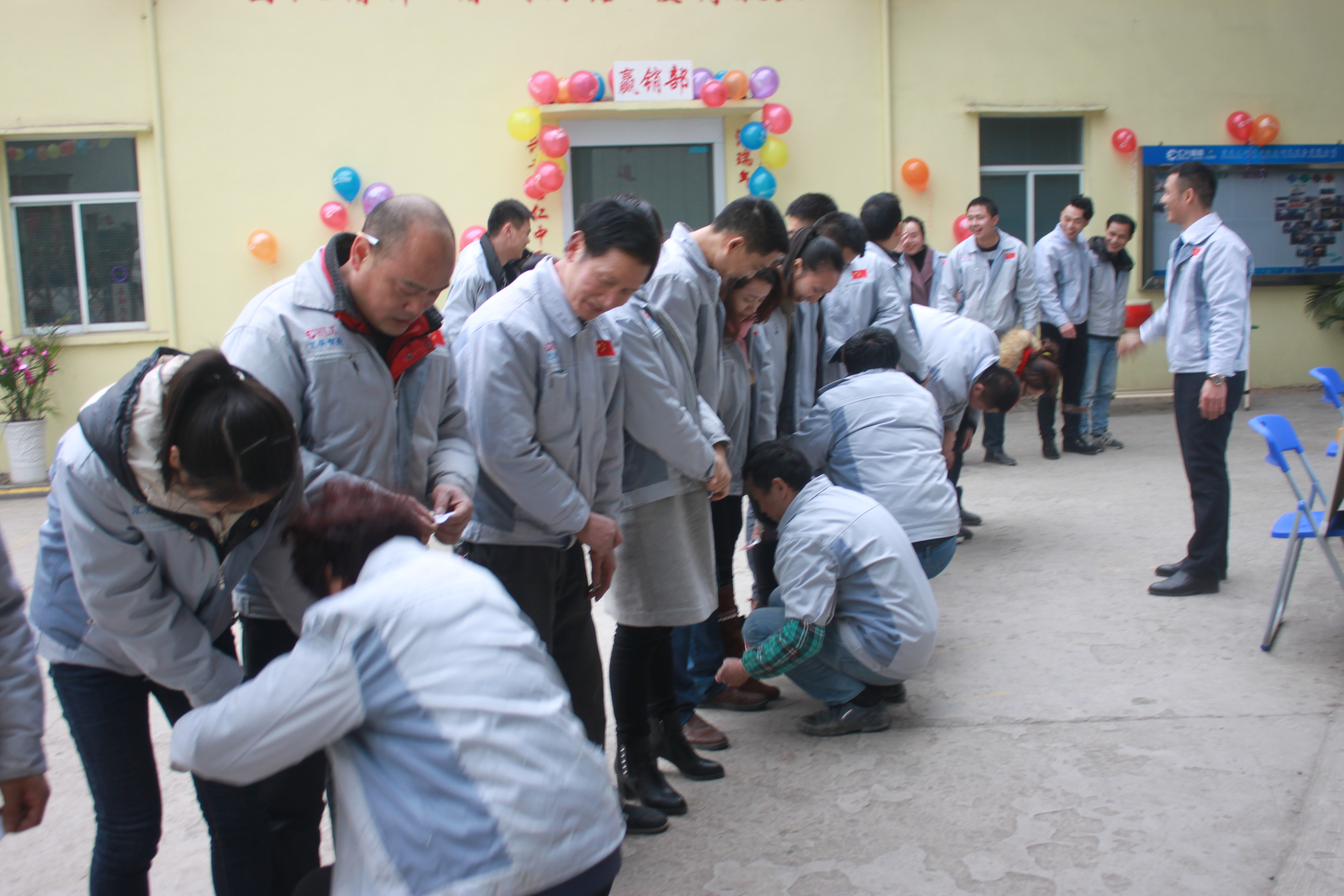 (眾人一條心)游戲準(zhǔn)備中,裁判們?yōu)檫x手們系上同心交織的紐帶 匯利興女戰(zhàn)士敲擊士鼓,士氣比武器更重要 會(huì)議召開前對企業(yè)三道(人道、孝道、商道)行三鞠躬 年度盛會(huì)由主持人劉園園上臺(tái)正式拉開序幕,會(huì)議前我們一起回眸2016年工作縮影,回眸了與匯利興大家庭的交集。 會(huì)議上,胡總經(jīng)理表示:2017年新起點(diǎn)的一系列規(guī)章制度、員工薪酬福利制度、員工職位考核制度,回首了2016年匯利興的成長與發(fā)展,3月14日公司搬址、傳祺戰(zhàn)車加入、倉儲(chǔ)及系統(tǒng)完善,2017年展望與目標(biāo)。同時(shí)表示感謝大家在2016年中的包容與支持同時(shí)也相信大家在2017年能一起攜手完成我們的目標(biāo)及挑戰(zhàn)。此后各部門代表發(fā)言總結(jié)2016年展望及2017年每月業(yè)績目標(biāo)。 匯利興全體戰(zhàn)士一起回眸2016年與匯利興大家庭的交集 隨著年會(huì)的氣氛越來越濃厚,接下來由胡總經(jīng)理一一頒發(fā)獎(jiǎng)金及揭曉年會(huì)大獎(jiǎng)獲者。獎(jiǎng)金頒發(fā):最佳付出獎(jiǎng)、最佳責(zé)任獎(jiǎng)分別是劉元平與石樂歡戰(zhàn)士,在此感謝兩位家人的奉獻(xiàn)與付出。 在你們愛家的同時(shí)匯利興這個(gè)家會(huì)更加愛你們。 胡偉路總經(jīng)理與“最佳責(zé)任獎(jiǎng)”榮獲者石樂歡同框合影 胡偉路總經(jīng)理與“最佳付出獎(jiǎng)”榮獲者劉元平同框合影 年會(huì)大獎(jiǎng)揭曉,胡總經(jīng)理一一揭曉大獎(jiǎng)獲者,此次大獎(jiǎng)由26個(gè)英文字母之一相繼而出,獲獎(jiǎng)組圖以下: 胡偉路總經(jīng)理與年度盛會(huì)大獎(jiǎng)獲得者合影圖(特等獎(jiǎng)、一等獎(jiǎng)、二等獎(jiǎng)、三等獎(jiǎng)、四等獎(jiǎng)) 年度盛典活動(dòng)逐漸接近尾聲,活動(dòng)以“畫鼻子”游戲拉開帷幕。即使看不見光明,只要心中有信仰、信念那也將是一個(gè)通往前方的航燈。 匯利興大家庭年會(huì)團(tuán)圓飯圖貌 隨著年飯的結(jié)束,2016年盛會(huì)圓滿結(jié)束。回首過去,放眼未來,2016年已逝去的,我們不再留戀,2017年的到來我們?nèi)ビ樱灰驗(yàn)樵谛碌囊荒暧形覀兊哪繕?biāo)及夢想我們要一同去創(chuàng)造去實(shí)現(xiàn)它,實(shí)現(xiàn)中國智能裝備全產(chǎn)業(yè)鏈集成智造標(biāo)桿,繼續(xù)引領(lǐng)行業(yè)的發(fā)展。同時(shí)在此感恩所有對匯利興關(guān)懷及支持過的您們,正是因?yàn)橛辛四鷤兊闹С植诺靡宰寘R利興茁壯成長,才能讓匯利興在行業(yè)道路上越走越穩(wěn)。感恩您們......