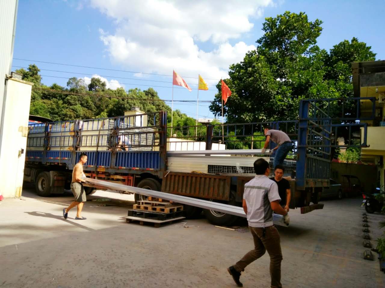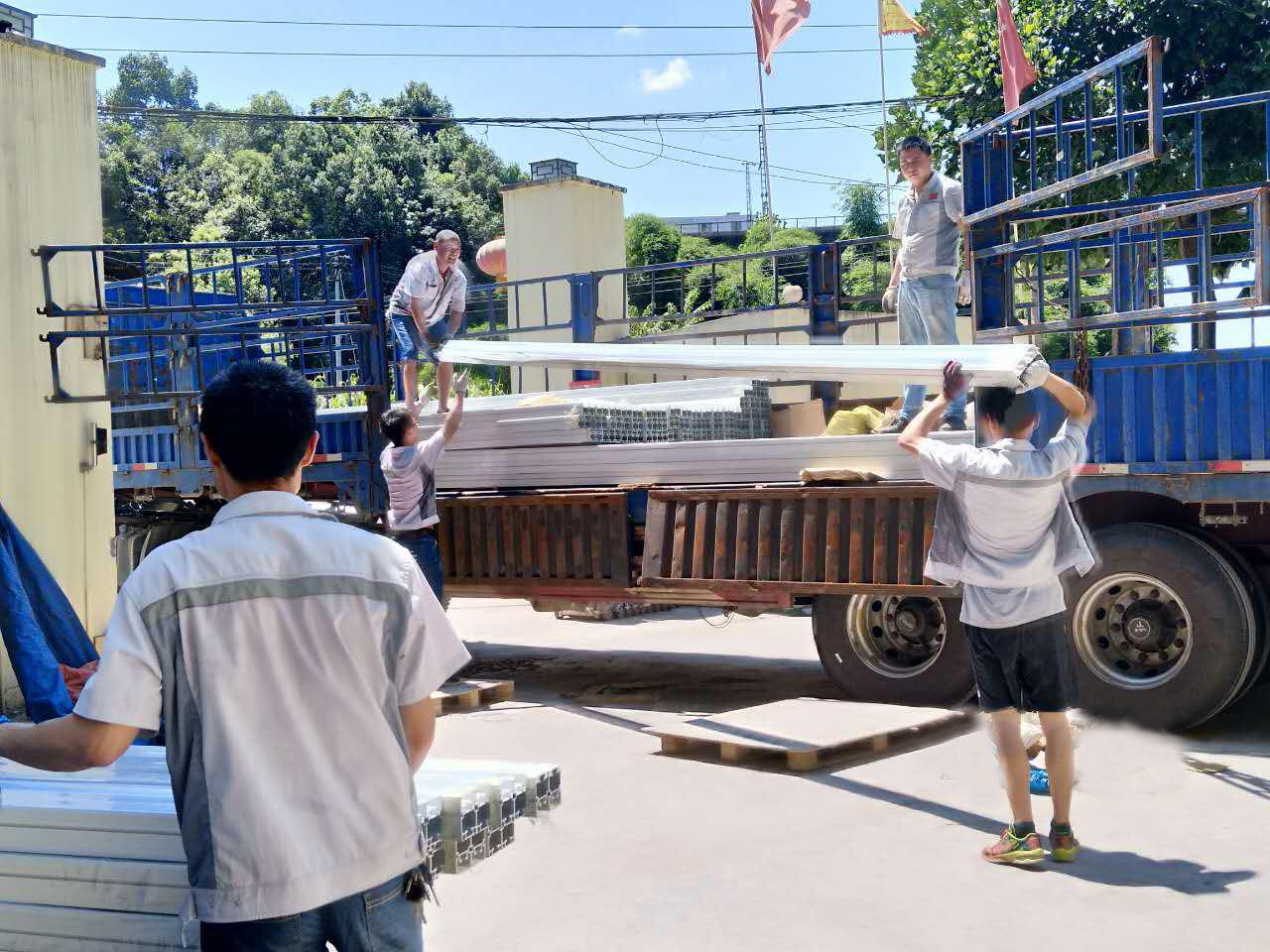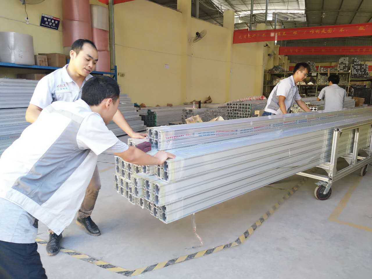 匯利興戰(zhàn)士切割鋁型材示意圖 匯利興一路風(fēng)雨同舟前行著,在上萬客戶的共同見證下,同客戶共成長共進(jìn)步并每時刻完善公司各體系,追求更好的匯利興及更好的服務(wù)并于此帶給大家,并全心全意對待每一位客戶。雖早已汗流浹背的我們但正因為有你們的認(rèn)可及支持,讓匯利興的每一位戰(zhàn)士們都越發(fā)有勁。 泛藍(lán)的天空與匯利興碧綠的大樹、整卡車鋁材、干勁十足的人融合一起,顯的匯利興別具一格,并在此盛夏炎熱之際,匯利興仍是一道靚麗的風(fēng)景線、毫不失遜色。在這里,還有一群敬業(yè)精業(yè)的匯利興家人們,他們始終踐行著“創(chuàng)于手、精于工、智于器、匠于心、品于行”的工匠精神,并精工打造每件產(chǎn)品并在高達(dá)35℃高溫環(huán)境下依舊持續(xù)戰(zhàn)斗著,在此感謝他們的努力與付出,你們辛苦了?。?! 一致努力奮戰(zhàn)的匯利興戰(zhàn)士們示意圖