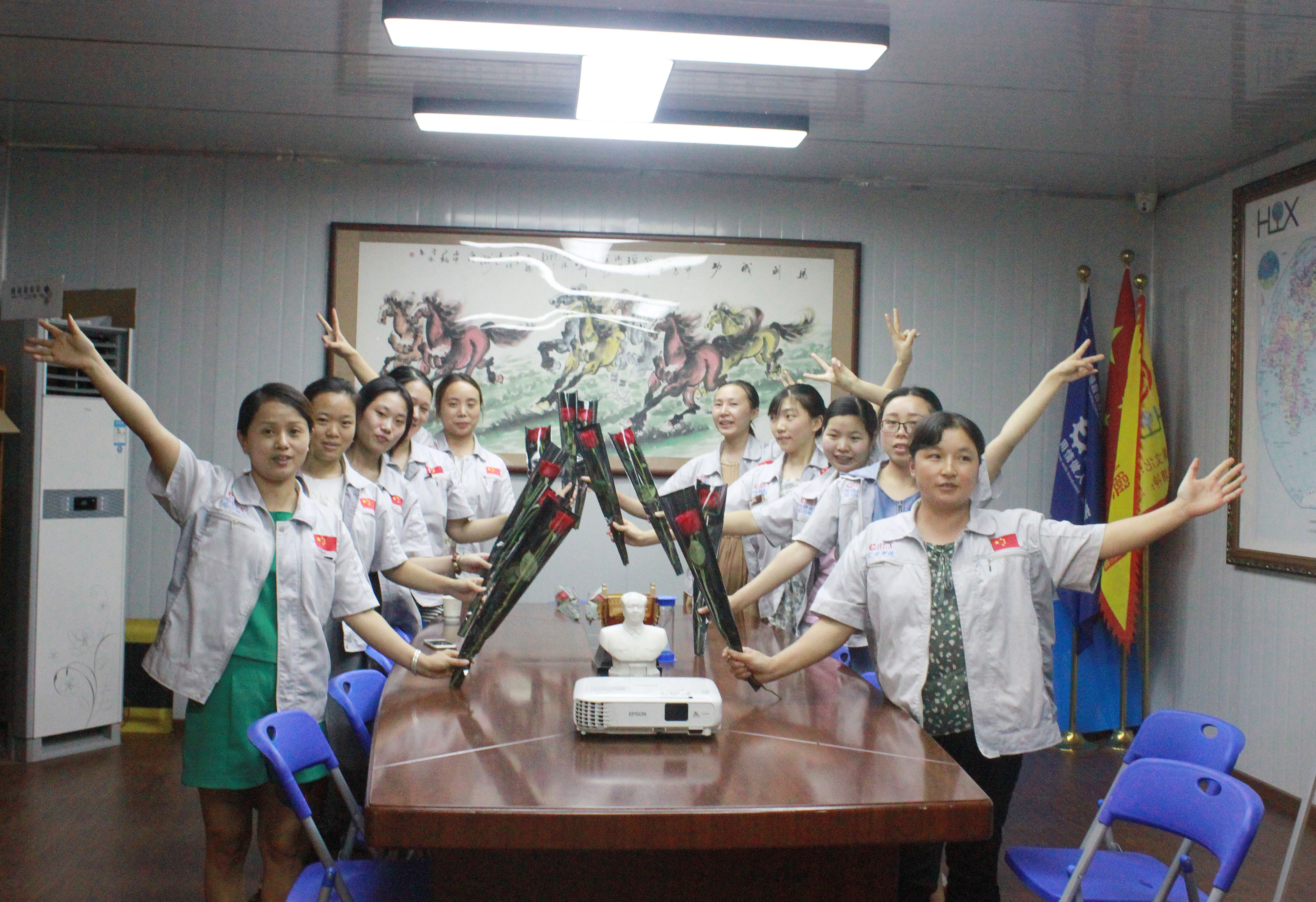 張副總代表公司為女戰(zhàn)士們授予歡愛(ài)之花 匯利興女戰(zhàn)士們滿(mǎn)臉笑容,每人都洋溢著一種幸福并尤為的珍惜小心翼翼握著玫瑰合影保存,用照片的模式來(lái)記錄這“獨(dú)特”七夕,讓這份大愛(ài)永不過(guò)期與之相隨,同時(shí)感謝公司對(duì)于我們的關(guān)懷及關(guān)愛(ài),今日的我們格外的美麗。 我司女戰(zhàn)士攜花合影留戀 傳統(tǒng)文化的弘揚(yáng)及對(duì)員工的大小關(guān)懷,可彰顯出一個(gè)企業(yè)的內(nèi)在文化及價(jià)值觀(guān)及面向社會(huì)的精神面貌,并著實(shí)提高了員工的凝聚力及向心力同時(shí)反映了一個(gè)企業(yè)對(duì)于人才的重視力度及關(guān)愛(ài)度并進(jìn)一步體現(xiàn)了我司企業(yè)文化三道“人道、孝道、商道”。