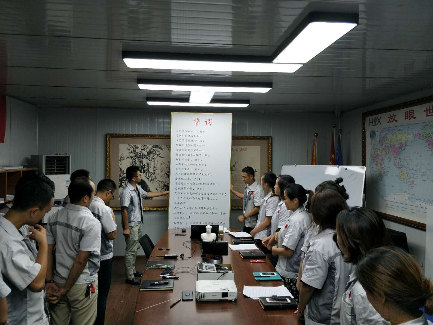 敢于做先行者,開天下萬物之先河。8月31日晚,我司精英們集體在匯利興學(xué)校開展隆重而莊嚴(yán)的宣誓會(huì)議,并在誓詞上簽署自己的名字,同匯利興一起共前行,正如誓詞所言“我們的家園-匯利興,是我們成長(zhǎng)的搖籃......以個(gè)人的尊嚴(yán)和公司聲譽(yù)宣誓,面對(duì)自己,必踏踏實(shí)實(shí)做好每一件事情,以告慰良心;面對(duì)客戶,定兢兢業(yè)業(yè)做好每一次服務(wù),以詮釋誠(chéng)信”。不忘初心,一路前行,匯利興始終秉承著“用情做人,用心做事”的企業(yè)理念,踏實(shí)而務(wù)實(shí)的做好每一件事,忠誠(chéng)團(tuán)結(jié)、勤奮進(jìn)取。 昔日百戰(zhàn)多,勇破萬重關(guān)。匯利興無堅(jiān)不摧的鋼鐵戰(zhàn)士,萬眾一心的精英團(tuán)隊(duì),個(gè)個(gè)都激情昂揚(yáng),鏗鏘有力的寫下自己的名字......寫下這份責(zé)任、這份擔(dān)當(dāng),因?yàn)樾闹杏袎?mèng)想、肩上有責(zé)任,成功的光芒也會(huì)不斷照亮著前方,指引道路;永不言敗是我們不變的信念,在奮斗的堅(jiān)實(shí)腳步中,以超常的智慧,以不達(dá)目的誓不罷休的精神,全力以赴、勇往直前,相信我們的目標(biāo)定會(huì)闊步前進(jìn)!