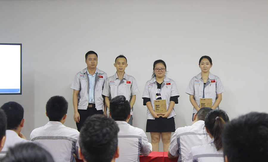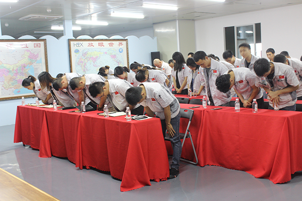 有大家才能有小家,升國旗唱國歌。全體員工精神抖擻,一起唱響國歌-五星紅旗迎風飄揚.....從今走向繁榮富強,現(xiàn)場聲音嘹亮、士氣如虹,著實展現(xiàn)了祖國兒女、新時代接班人的精神面貌。 會議開始,全體員工整肅衣冠,對倍加推崇的孝道、商道、人道鄭重鞠躬,莊嚴宣誓企業(yè)愿景:“成為全球領(lǐng)先的智能自動化產(chǎn)業(yè)鏈集成服務(wù)商”,企業(yè)使命:做受尊敬的好人,造受尊敬的產(chǎn)品,辦受尊敬的企業(yè),建受尊敬的平臺,企業(yè)精神“用情做人、用心做事”,團隊精神“忠誠團結(jié)、勤奮進取”,工匠精神:創(chuàng)于手、精于工、智于器、匠于心、品于行等。
