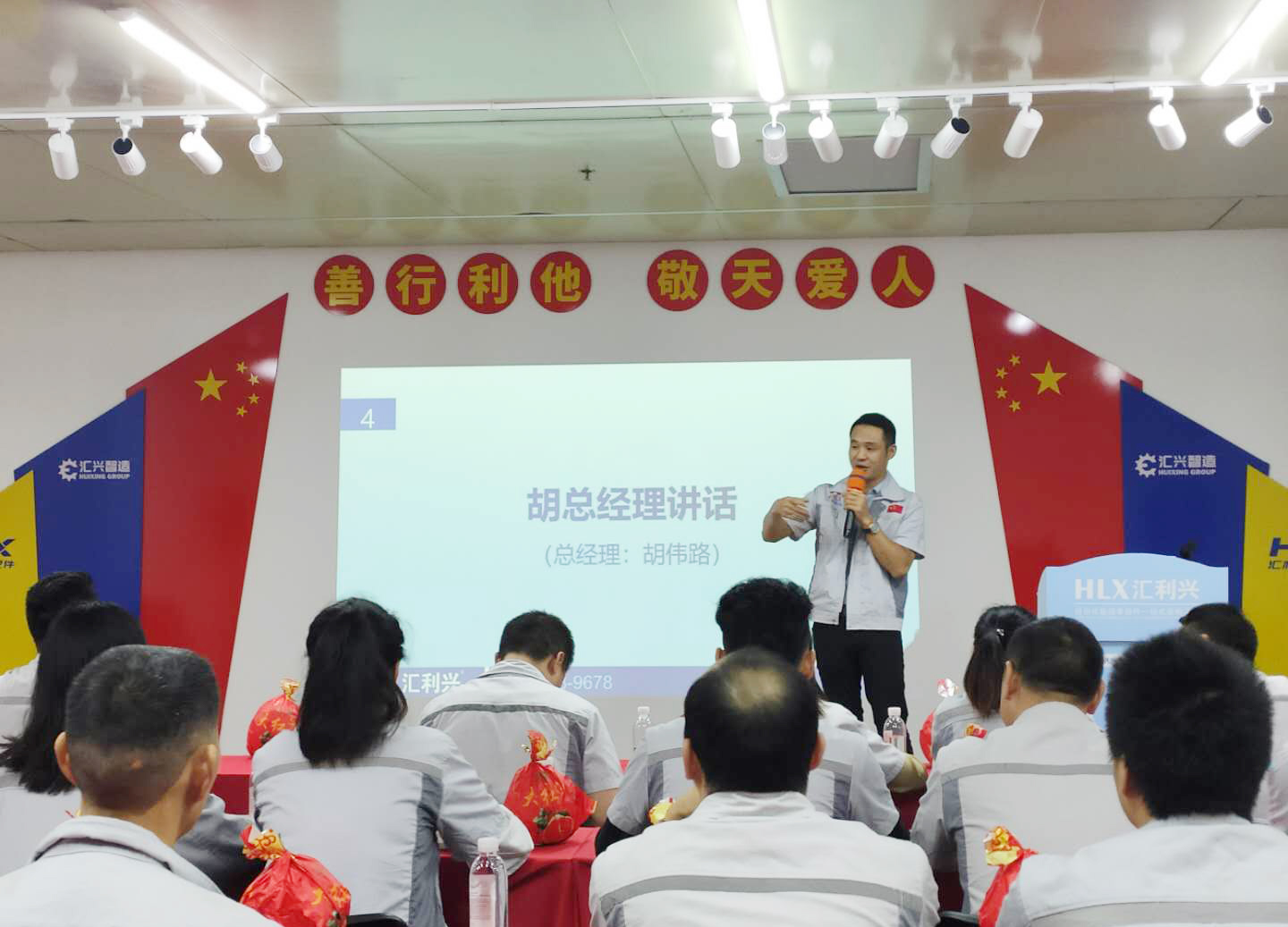會(huì)議第四項(xiàng),迎中秋慶國(guó)慶。公司自成立以來(lái),一直秉持以人為本,關(guān)愛(ài)員工的理念,不斷完善員工福利制度,每逢大大小小的節(jié)日都不忘為員工送上一份祝福,讓員工具有自豪感、幸福感和歸屬感,讓員工在繁忙的工作中也能感受到家的溫暖,同時(shí)也促進(jìn)了團(tuán)隊(duì)的凝聚力及向心力,提升員工工作動(dòng)力,為匯興遠(yuǎn)大前景及發(fā)展貢獻(xiàn)一份力量! 會(huì)議第五項(xiàng),胡總經(jīng)理作工作總結(jié)。首先胡總通過(guò)企業(yè)文化之一“善行他人,敬天愛(ài)人”這八個(gè)字進(jìn)行相應(yīng)闡述,積善行,利于他,以行動(dòng)為結(jié)果導(dǎo)向,要常懷敬畏之心、感恩之心,利他人之心,要懷有強(qiáng)烈的愿望,付出不亞于任何人的努力;其二,追求銷售最大化,實(shí)現(xiàn)經(jīng)費(fèi)最小化;其三,勉勵(lì)在場(chǎng)員工,在面對(duì)困境時(shí),要拿出勇氣,要燃起斗志;要胸懷坦誠(chéng)之心,要不斷挑戰(zhàn)創(chuàng)造性的工作,要對(duì)自己有所期望。最后談到:人生最幸福的事情,就是有人信你,有人幫你,有人愛(ài)你,有人懂你,并期望全體員工為了公司的美好明天,一定要努力努力再努力! 會(huì)議尾聲,齊唱匯興之歌(相信我們會(huì)創(chuàng)造奇跡),全體員工起立肩并肩,一起唱響“只要我們一起努力,相信我們一定會(huì)創(chuàng)造奇跡”,歌聲嘹亮,振奮人心!