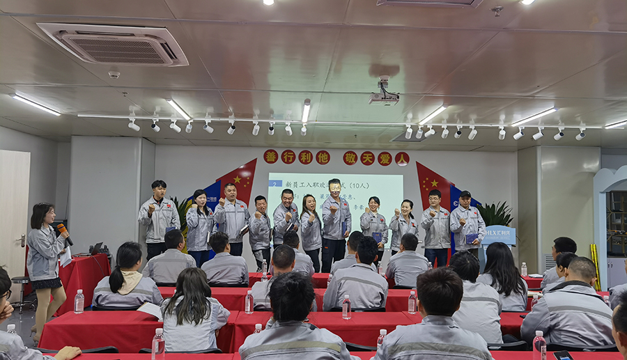 會議開始,三位高管敲響2021年征程的號角,鼓聲震天,士氣如虹,潛移默化鼓舞著戰(zhàn)友們奮勇前進(jìn),并以這種以評促進(jìn)、你追我趕的“激勵文化”,鞭策著員工們不斷爭先創(chuàng)優(yōu),推動企業(yè)發(fā)展內(nèi)生動力,從而形成“我來干、搶著干、努力干”的工作作風(fēng)。 會議第一項(xiàng),企業(yè)文化展示。全體員工整肅衣冠,對倍加推崇的孝道、商道、人道鄭重鞠躬,莊嚴(yán)宣誓企業(yè)愿景:“成為行業(yè)優(yōu)秀的智能自動化產(chǎn)業(yè)鏈集成服務(wù)商”,企業(yè)使命:做受尊敬的好人,造受尊敬的產(chǎn)品,辦受尊敬的企業(yè),建受尊敬的平臺,企業(yè)精神“用情做人、用心做事”,團(tuán)隊(duì)精神“忠誠團(tuán)結(jié)、勤奮進(jìn)取”,工匠精神:創(chuàng)于手、精于工、智于器、匠于心、品于行等。 會議第二項(xiàng)。新員工入職歡迎儀式,培育新生力量,助力企業(yè)發(fā)展,增強(qiáng)企業(yè)核心競爭力,強(qiáng)化人才建設(shè)梯隊(duì)。由客服部經(jīng)理石樂歡為新入員工頒發(fā)紀(jì)念品。