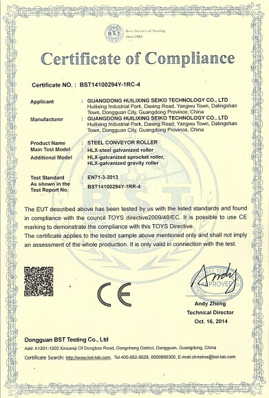 5、匯利興集團旗下東莞市昭陽物流輸送設備有限公司,主營各式物流輸送滾筒,并已經(jīng)通過CE認證,我們誓言將打造物流輸送行業(yè)標桿;