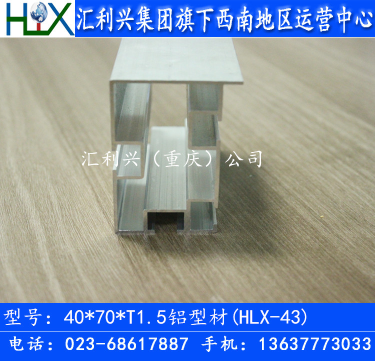 匯利興產(chǎn)品之皮帶線鋁型材系列,40*70*t1.5鋁型材(編號:HLX-43);又名帶護(hù)邊40*70鋁型材,每支6.02米長,壁厚1.5,米重1.428kg、槽寬8.3mm, 此款鋁型材常使用在簡易生產(chǎn)輸送線、無燈架流水線,配合在此款4070鋁型材常用配件有PVC輸送皮帶,機(jī)頭機(jī)尾動力滾筒、鍍鋅滾筒等一系列皮帶線常規(guī)材料。